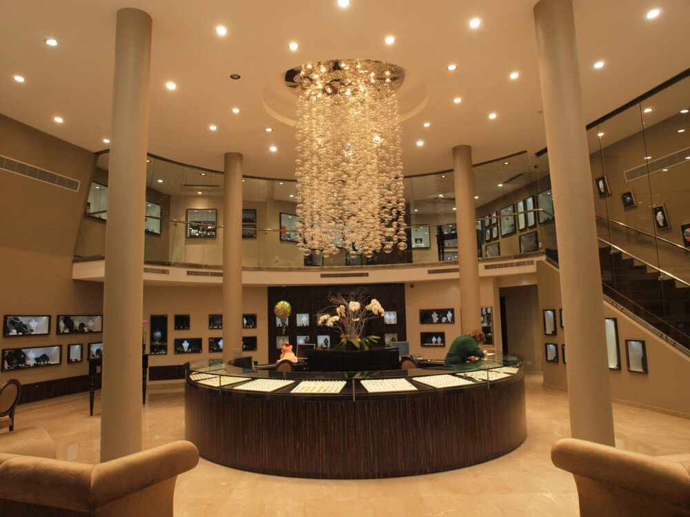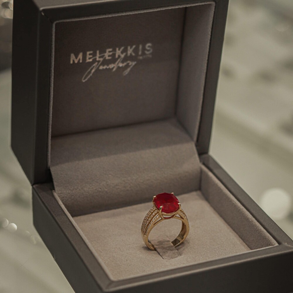 The décor of their elegant shop is delightful, from the moment you open those big, solid doors. The centrepiece, a spectacular glass bubble chandelier, surrounded by very impressive and immaculate displays of the finest, exclusively designed jewellery in Cyprus, in fact internationally, as Melekkis is becoming an international brand name with plans to expand worldwide in the future..