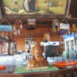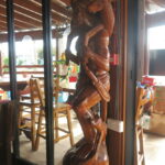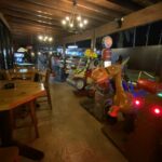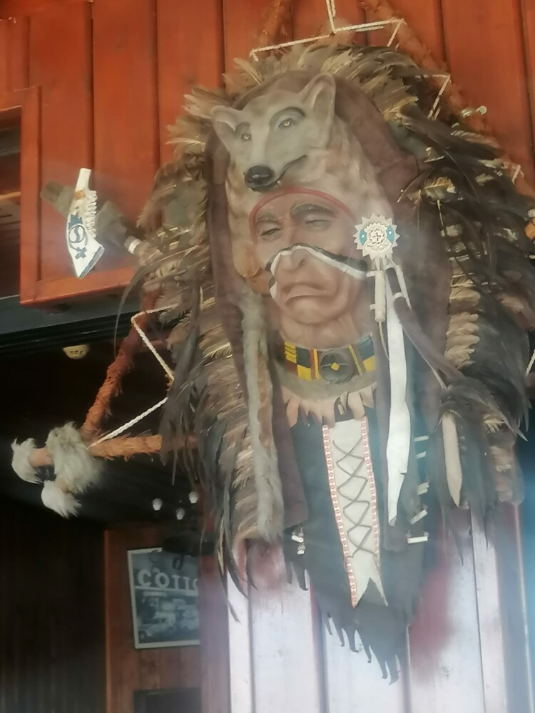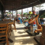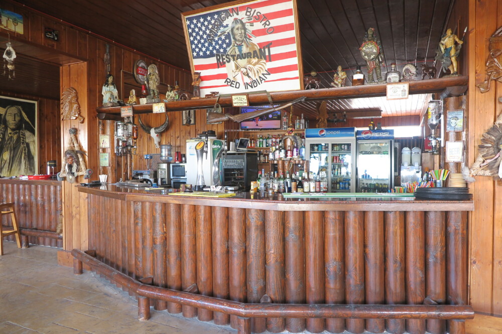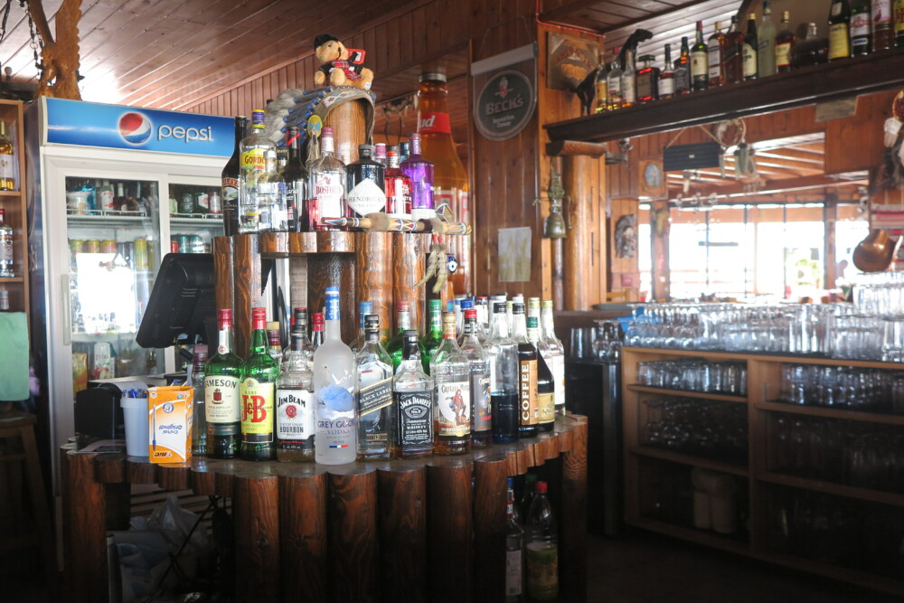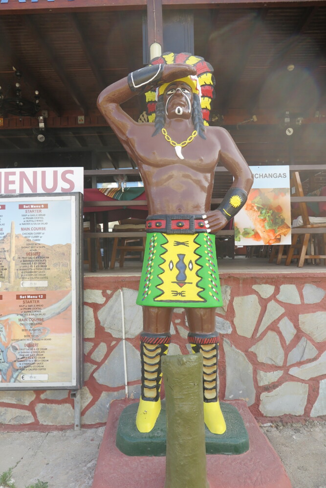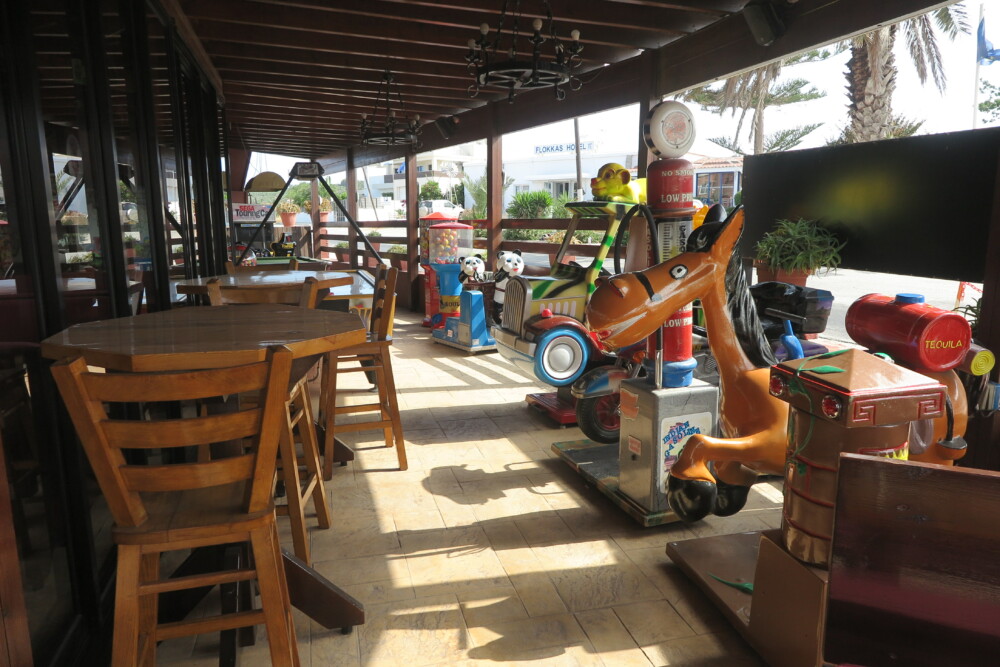 Outside its all wood, there’s a covered terrace running the full length of the front with comfy bench seating. Inside it’s more wood, tables for two, and bigger tables for parties and more comfy seating, wooden beams on the ceiling, and Red Indian artifacts everywhere, Yiangos said “We collected from trips to Indonesia, Cuba, and Holland”, a great backdrop for a selfie! … and there’s lots of things for the kids to do, everywhere!