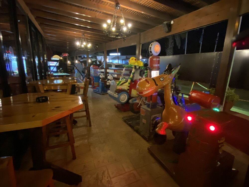 This is a family-run restaurant welcoming families, birthday parties, and special events and it’s built for the kids, with loads for them to do here, and they’ve got a pool table. There’s even a separate section dedicated to the nippers, with toddlers’ toys, gated for extra security, and Baby Seats for your table.
