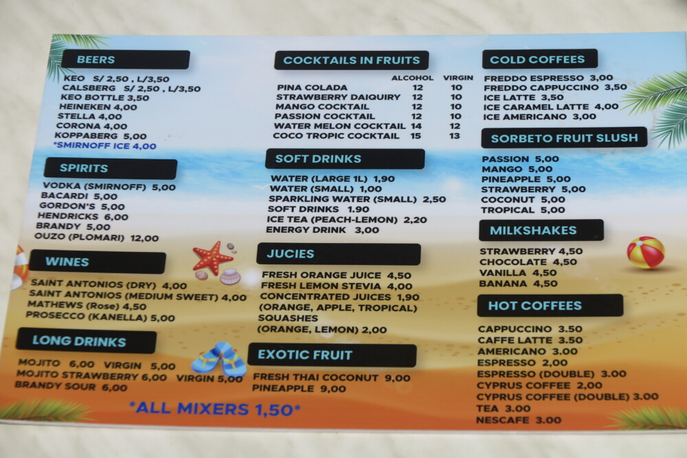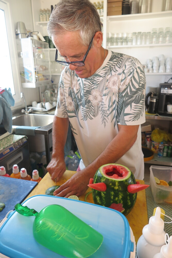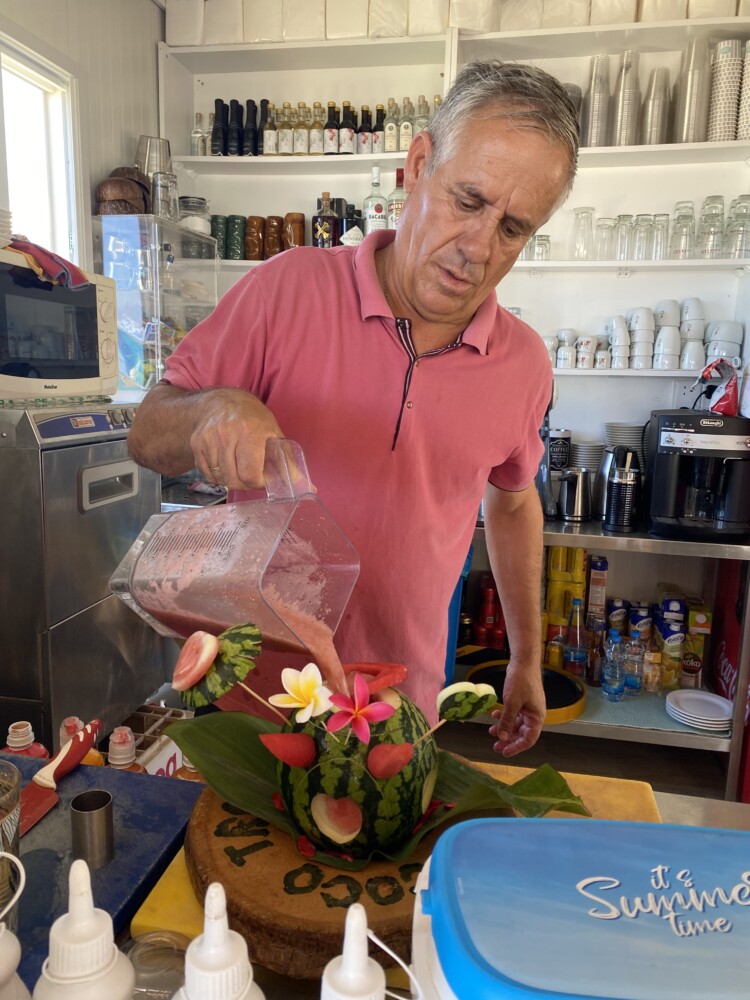 ‘Speis’ continued; “That was shortly followed by adding fresh pineapples, watermelons, honeydew melons, and all the other seasonal fresh fruit like strawberries, mangos, and oranges to mention but a few, that Cyprus has an abundance of … and then, I thought it would be a good idea to open a beach cafe that has the lot”!