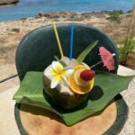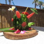 I asked him to tell me more; he said, “We loved the idea of mixing smoothes and cocktails using fresh fruit, inside real fruit … so we pour out the fresh coconut milk for you to drink, then mix you a wicked coconut cocktail in the coconut and you can share it with a friend and then eat all the soft white coconut flesh inside … its a 3 in 1 drink! So, I mix your Pina Colada in a Pineapple, Strawberry Daquiery in a Coconut, Watermelon Cocktails in the Watermelon, and lots more”