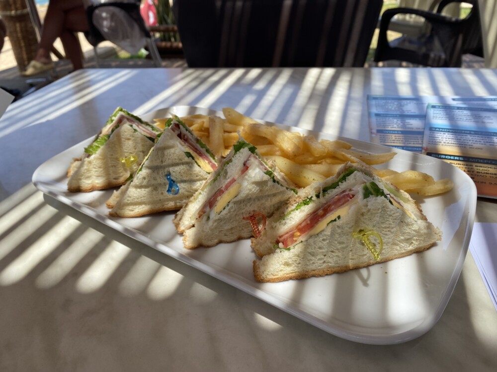 Best sellers include the traditional Lountza & Halloumi or the Mini Pitta Pread with Lountza & halloumi served with hand-cut chips and salad … or The Club Sandwich a triple-decker of ham, cheese and salad.