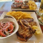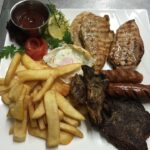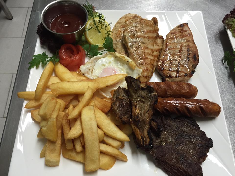 The Pork Chops here are not one big one that doesn’t fit on the plate but two 250 gm chops, Marios said, “They are more tender when they are smaller” … then he said; “You really must try the Spare Ribs, trust me, they’re just the best; pork loin ribs, cooked in the oven for at least 3 hours, covered in our secret homemade BBQ Sauce”, I asked?, but he wouldn’t even tell me the secret recipe, but they left me licking my fingers as well as my lips.