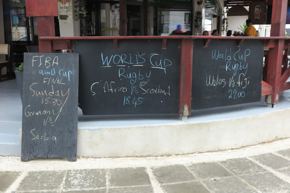 These days Marios hosts only occasional live music nights … but when it comes to live sports Marios boasts 5 big satellite dishes … with 6 Big Screen TV’s and a huge projector screen he can get 5 different matches or in fact, 5 different sports on at the same time and the atmosphere gets a bit electric in here at times. So, the chances are you’ll find the football, rugby, boxing, athletics and tennis on here, in fact, all you need to do is text Marios in advance and he’ll probably find it for you.
