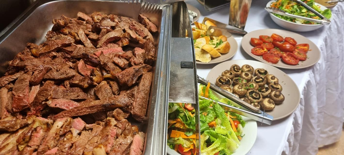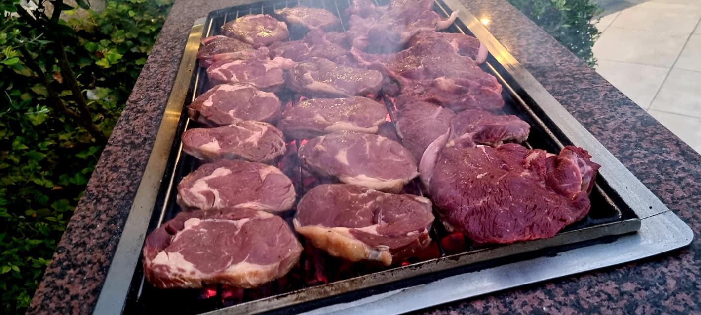 Josh and the crew will come and cook for a minimum of 12 people … Everything from Pitta bread or Bread Rolls, with Village Salad with Feta Cheese, Cajun Coleslaw Salad, English Pork Sausages, Chicken Kebabs with a mix of assorted flavours, Beef Burgers, Cheese Slices, Fried onions and Potato Wedges with Garlic and Rosemary