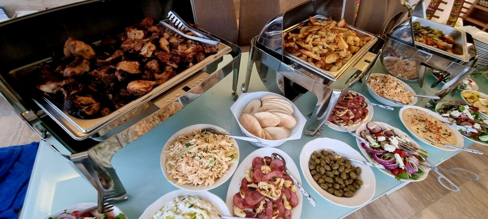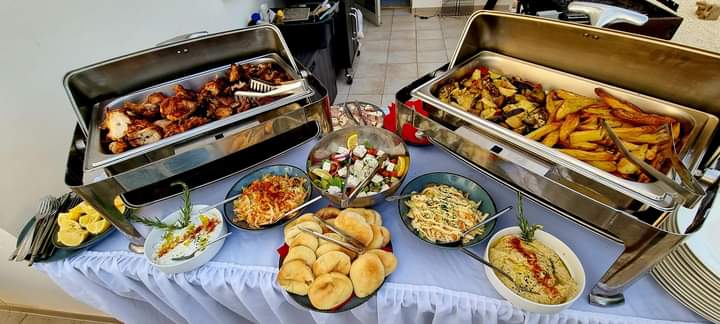 This one’s back by popular demand … Warm pitta bread, Greek Salad with Feta Cheese, Tzatziki Dip, Hummus Dip, Mixed Olives, Grilled Lountza, Gilled Halloumi, Pork Souvla, Chicken Souvla, Cyprus Potatoes in Garlic and Rosemary, with Roasted mixed Vegetables.