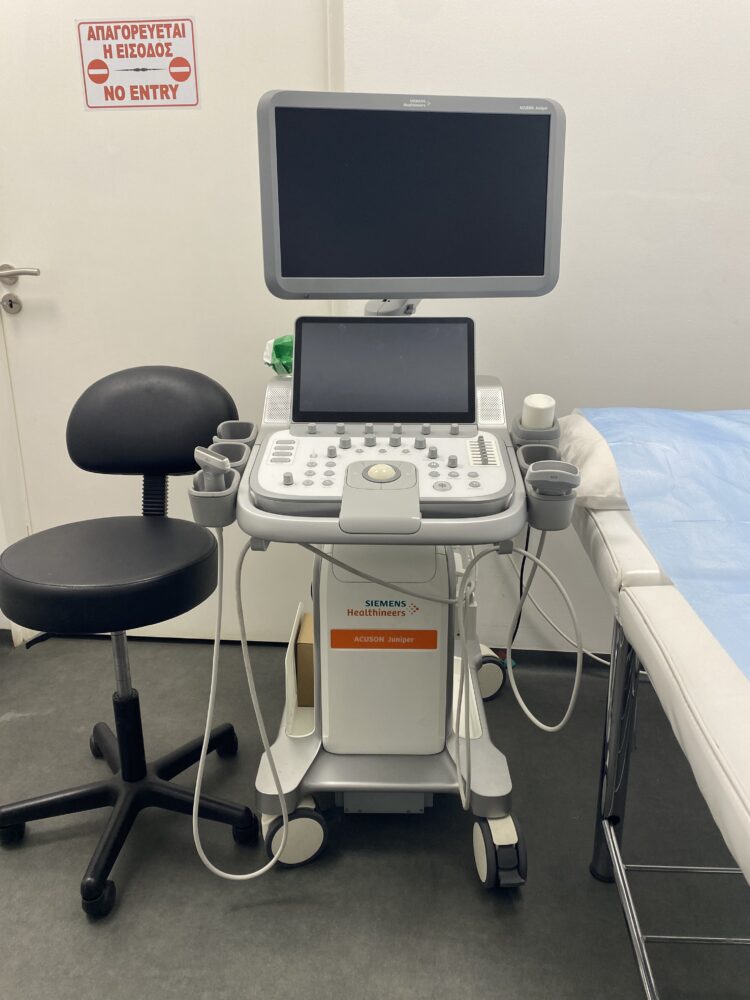 On my most recent visit, Lefteris mentioned, “We have just added the latest model of Siemens Healthineers Ultrasound machine to our list of services, and have a specialist on site to conduct Ultrasound check-ups for our clients”. He continued, “The ACUSON Juniper is positioned as a high-performance shared-service ultrasound system designed to cover a wide range of clinical applications, including radiology, cardiology, OB/GYN, abdominal, vascular, without compromising on image quality or ease of use, and much more”.