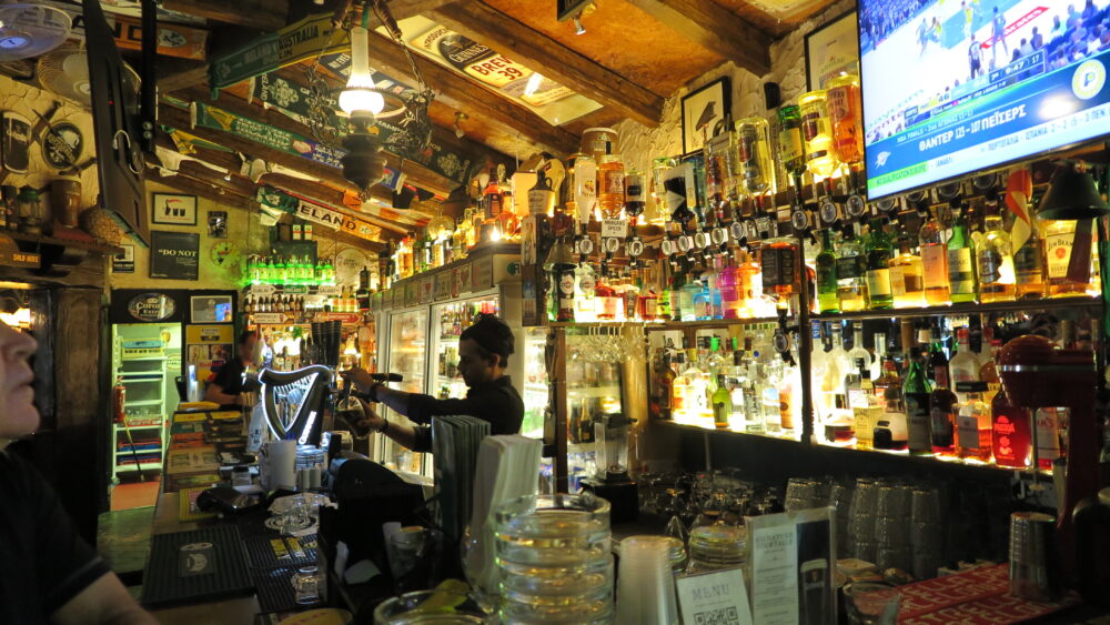 I asked them about the entertainment … Katerina said, “The musicians are Irish, but the music they play is not only traditional: it’s a balanced mix of good old pop and rock, the best Irish tunes and modern songs you’ll probably know, and btw, the singers do take requests. Naturally, all nationalities visit Paddy’s, united by the love for live music and happy vibes”