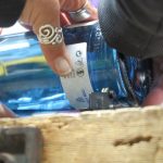 First Nicole measured the distance exactly, then again, "measure twice, cut once" she whispered, a lady of my heart lol ... she carefully twisted the bottle putting a score mark around the base, just where we wanted it. Then poured boiling hot water from the kettle onto the score on the bottle, and immediately put the bottle under cold running water to provide the stress shock to the glass and 'Ping' the bottoms dropped off ... it looked easy!