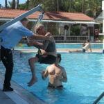 On one of my afternoon visit's Rob wanted to get into the pool, and to my astonishment, the hotel had that covered too. The lifeguards brought out this amazing winch-type harness, which has a secure borehole specifically poolside. In a few minutes, the winch was set in its place, and they lifted Rob into the harness, which swivels over the water and lowers Rob onto a lilo so he can safely float, keeping his head above water.